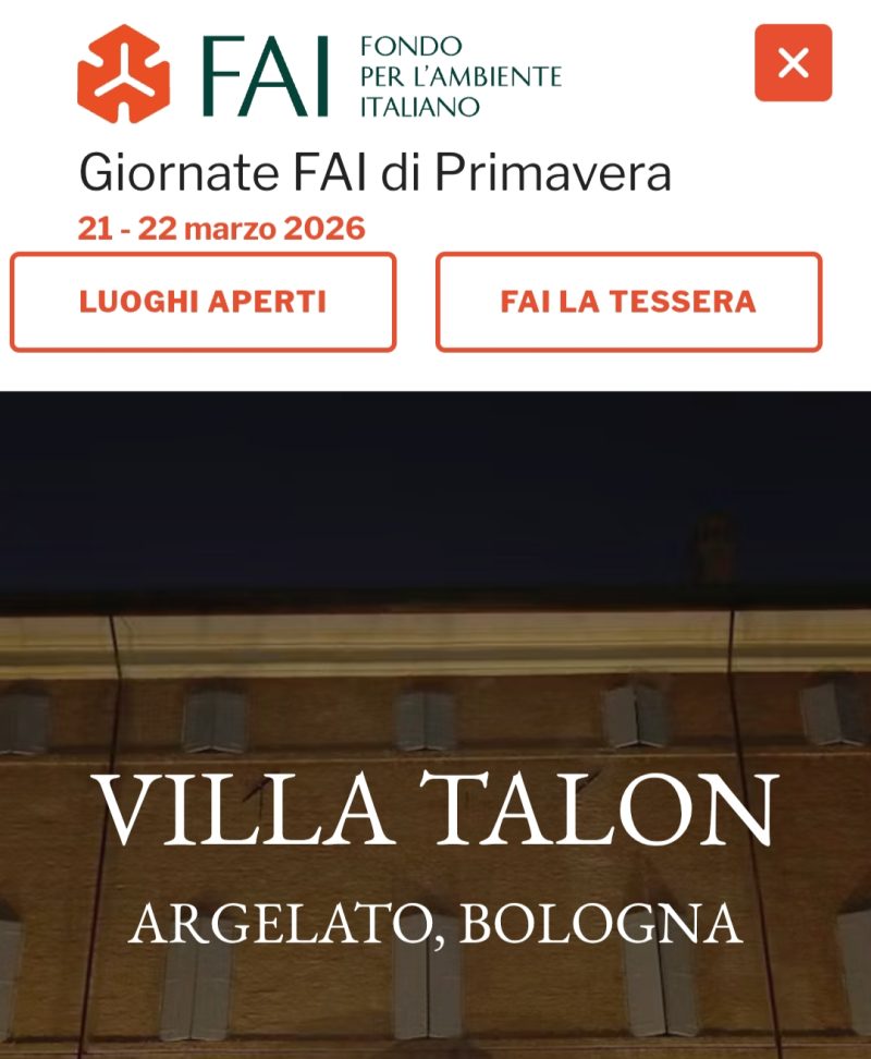 Per la prima volta dopo i restauri post-terremoto, Villa Talon apre le sue porte. Un privilegio e un’occasione irripetibile per entrare in un luogo rimasto per secoli custode della storia. La villa si presenta con un’architettura solida e misurata, priva di ostentazioni ma capace di trasmettere eleganza e autorevolezza. Gli affreschi monumentali, tornati allo splendore, raccontano una stagione di ambizione e cultura, quando la dimora era insieme residenza e centro di governo agricolo. Intorno si estende il paesaggio della bassa bolognese:  il Reno, i canali di bonifica, il parco e gli alberi secolari compongono lo “spirito del luogo” (il genius loci dei latini), un ambiente intatto, unico e irripetibile, nato da secoli di intreccio tra storia, cultura, natura e presenza umana. I prati che circondano la villa ricordano ancora i paddocks per l’allevamento di cavalli purosangue inglese da corsa, passione della famiglia Talon Sampieri. Nei secoli la dimora ha  ospitato personaggi illustri come Papa Giulio II, Vittorio Emanuele III e Ottorino Respighi. Visitare Villa Talon durante le Giornate FAI significa attraversare secoli di bellezza in un luogo  che, dopo il silenzio imposto dal terremoto, torna finalmente a raccontarsi.