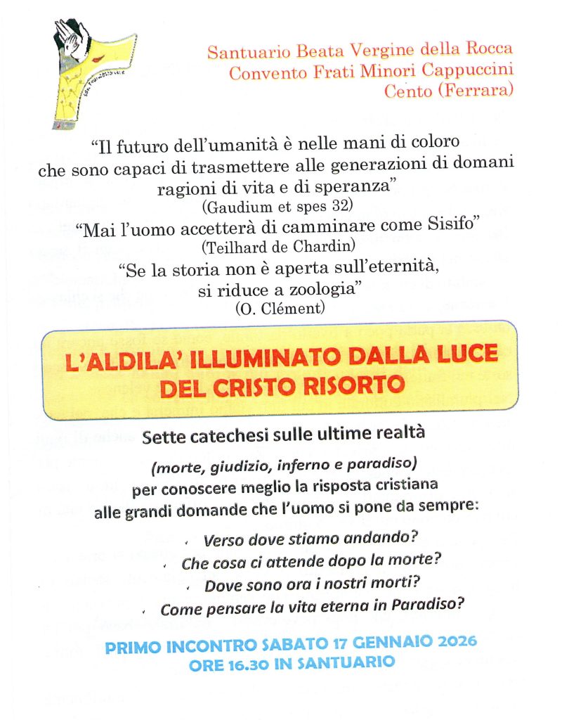 Gli 8 incontri si terranno, IN DIDATTICA MISTA, il martedì dalle 21.00 alle 22.30 presso la parrocchia di Santa Rita (via G. Massarenti 418 – Bologna)