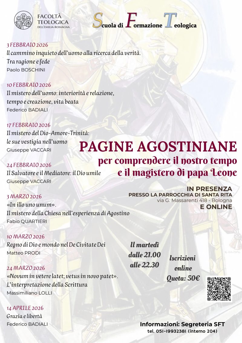 Il seminario si propone di scandagliare alcuni di questi temi, cari alla riflessione di sant’Agostino, a partire da alcune delle sue pagine più celebri, per consentire agli studenti una maggiore familiarità con questo «gigante» del pensiero cristiano e per cogliere la portata profetica della sua riflessione per gli uomini e le donne del nostro tempo e per la nostra esperienza ecclesiale.