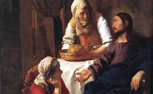 Gesù, distaccatosi dai suoi discepoli, entra nella casa di Marta e Maria, un luogo che sembra essergli molto familiare. Il racconto non menziona la compagnia di Gesù – i discepoli che erano in cammino con Lui – perché l’attenzione si concentra su un episodio particolare avvenuto durante la sua accoglienza. Marta era assorta in molteplici servizi, mentre sua sorella Maria, seduta ai piedi di Gesù, lo ascoltava attentamente. Il comportamento di Maria infastidisce Marta, che interpella la coscienza di Gesù, il quale, ai suoi occhi, era pur sempre un maestro religioso. A questa interpellanza, Gesù sembra prendere le parti di Maria, affermando che ella “ha scelto la parte migliore”. Certamente, Gesù non ha condannato Marta; anzi, Egli non condanna nessuno, non guarda nessuno con il peso dei suoi errori. Ma in Marta è scaturito un dolore profondo. Un dolore dovuto al fatto che Maria non si è mostrata sensibile al suo bisogno di essere aiutata. Questo sentimento si esprime nel rimprovero rivolto a Gesù stesso: “Signore, non t’importa nulla che mia sorella mi abbia lasciata sola a servire? Dille dunque che mi aiuti!”. Invece di esprimere il suo bisogno in modo sereno, Marta esterna la “violenza” scaturita in lei. Era diventata agitata, non si possedeva più. Essere agitata in questo modo non è certo opera dello Spirito Santo, e Gesù glielo fa notare con delicatezza: “Ti affanni e ti agiti per molte cose”.