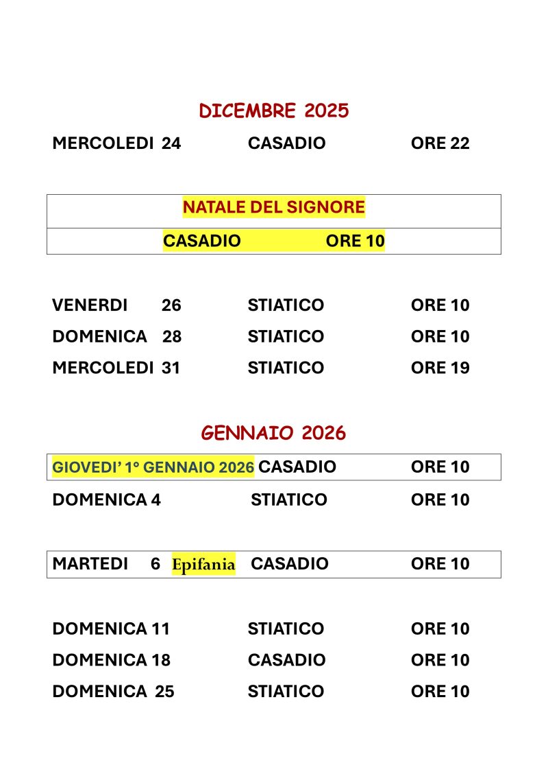 Orari liturgie Natale 2025 e Gennaio 2026