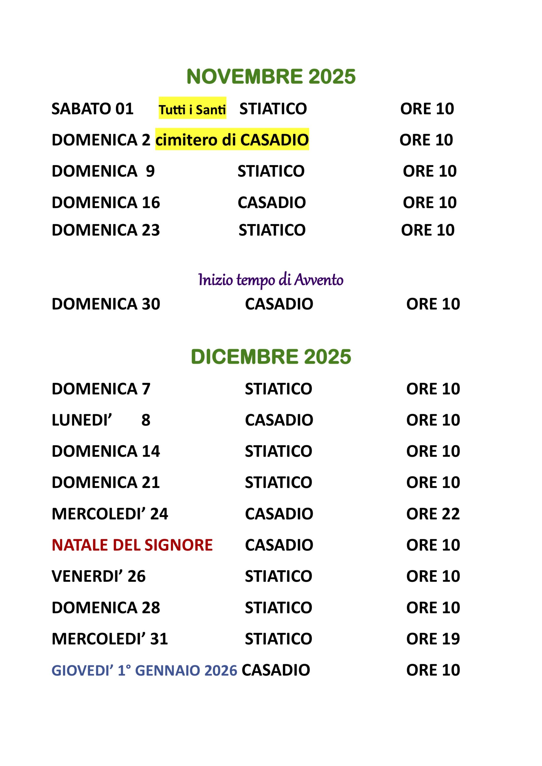 Orari liturgie Novembre e Dicembre 2025